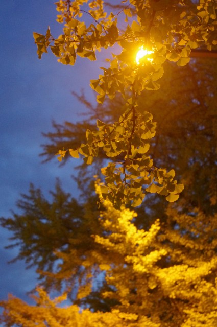 イチョウ並木が色づいているかと思ったのですが、黄色になっていたり葉が落ちている所もあれば、意外と青い所もあったりして…。公園周辺のイチョウはバラバラでした。県庁周辺が結構綺麗だったのに、着いた頃には日が落ちていました。んもう! また行くわよ!