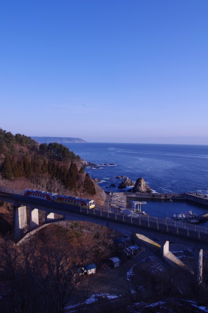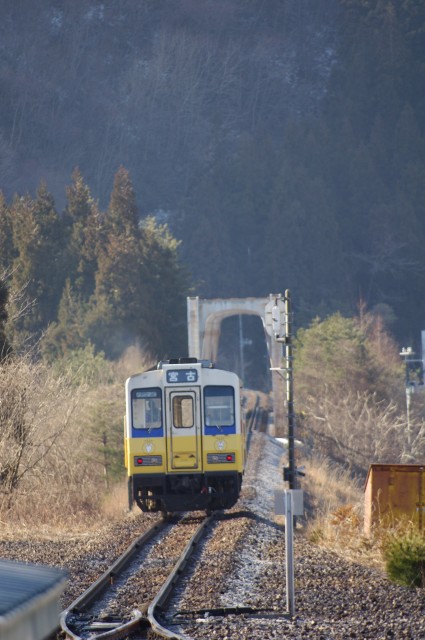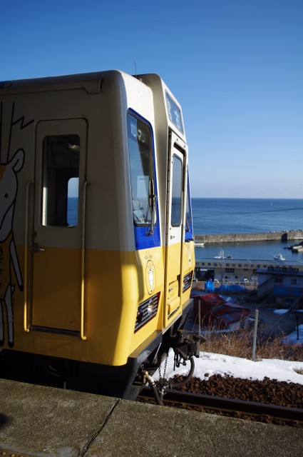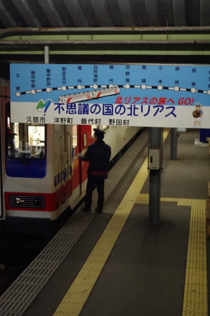 久慈駅の待合室でぼーっとしていると、「準備が出来ましたのでご乗車下さい」というアナウンスが流れました。ワンマン運転で駅員などいないところを見ると、列車の準備から案内まで全て運転手さん一人でやっていた模様。頭が下がります。