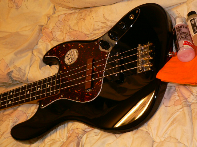 毎日のように触っている楽器なので、たまにはボディの手入れをしないといけません。汚れが固着したら、落とす時にボディに傷を付けていっちゃいますから。ポリウレタン塗装なので、塗膜は頑丈だしラッカーのような心配もないのですが、そこは愛です。…ああ歯がカユイ、鳥肌が立つ。
