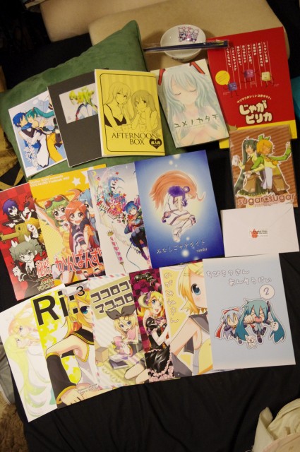 ・そしてたくさんの収穫物に囲まれて。ラミアスさん&ぐぅーさん、おつかい頼んじゃってすみませんでした。私は緑の人の本をお願いしたのに、何故か黄色い本ばっかりです。本当にありがとうございました。お返しは甘い物で!