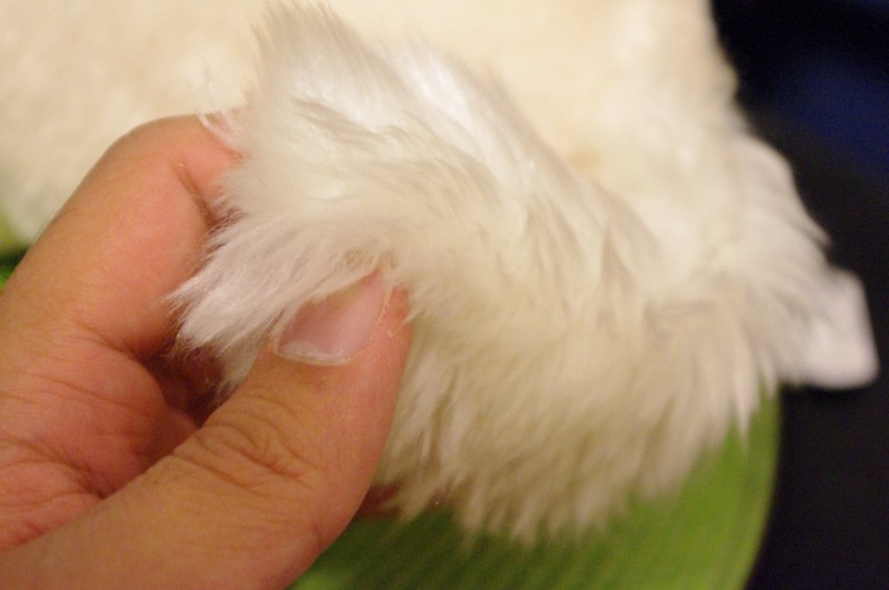 余談ですが、縫い目や補強ポイントなど、標準サイズとの共通点が多数見られました。ほぼそのままサイズアップした感じです。尻尾の状態は単純に大きさの問題だと思いますが、標準サイズの方は長期間クレーンゲームの中に入れられて傷んでしまった可能性もなきにしもあらず。