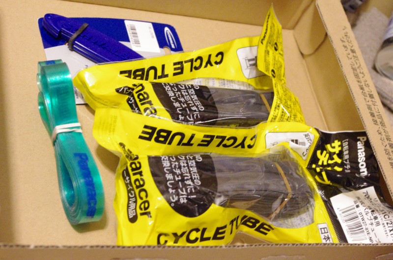 自転車のパーツが届きました。タイヤはパナレーサーのパセラ、チューブなども結局パナレーサーで揃えました。