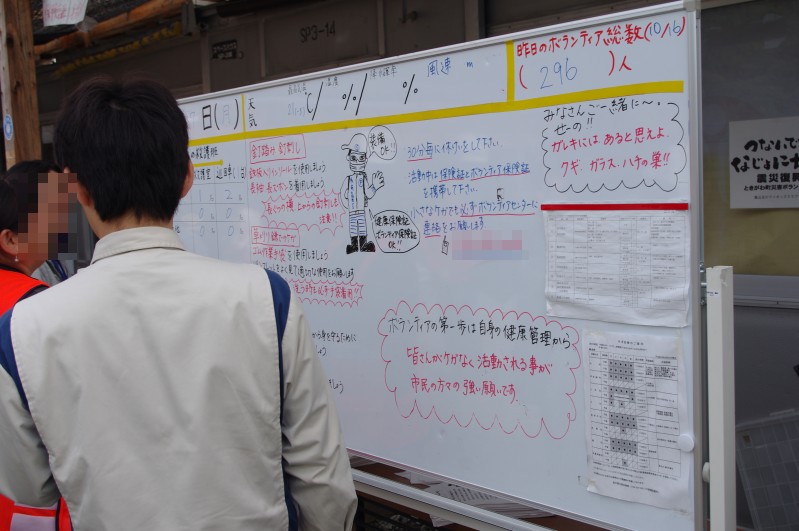 陸前高田ボランティアセンター。ボランティアの統括と、多少の装備を貸してくれます。