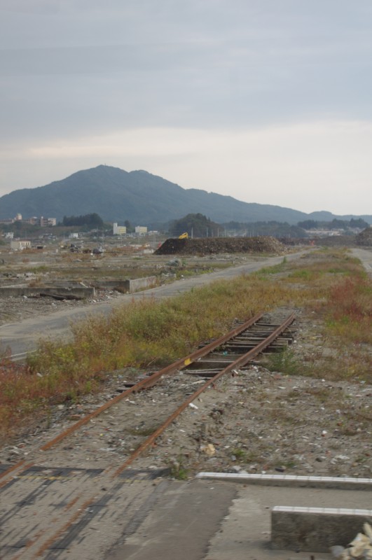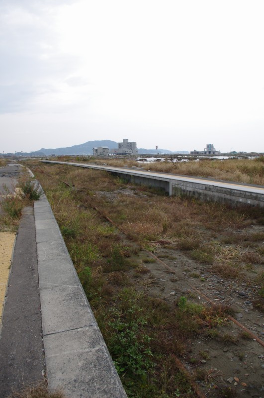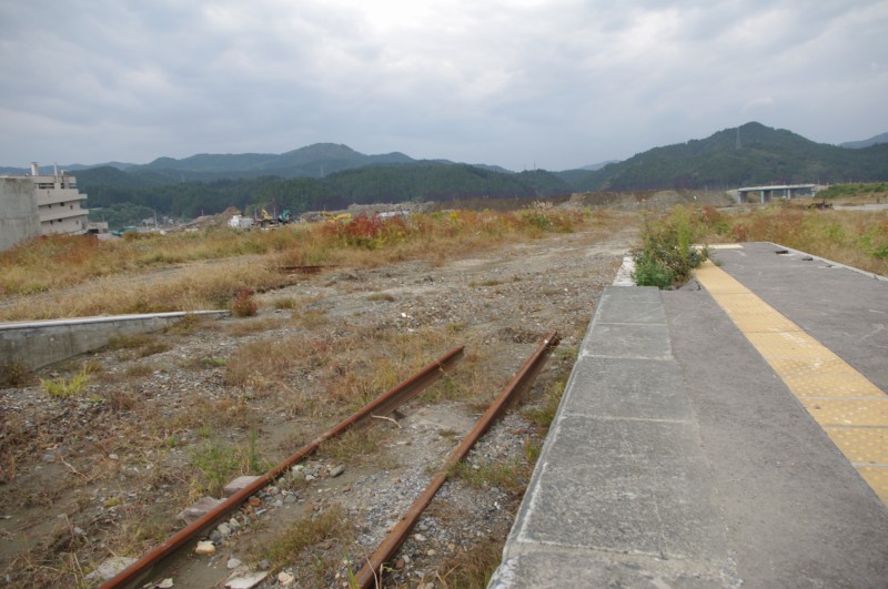 反対方向、盛(さかり)方面。陸前高田駅は線路が2本ありましたが、手前側しか残っていませんでした。