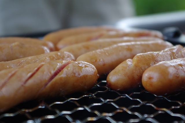 バーベキュー開始後、たかちほさんがヴァンフォーレ甲府のユニフォームに着替えてリフティングしたり、高麗川先生が良い笑顔で肉を焼いていたり、えりゃーさんがキャッチボールをしたり、蒼井さんとスティーブが幼女を追いかけたりしていましたが、残念ながらどれも顔が写っていて掲載できませんので、ウインナーの画で許して下さい。
