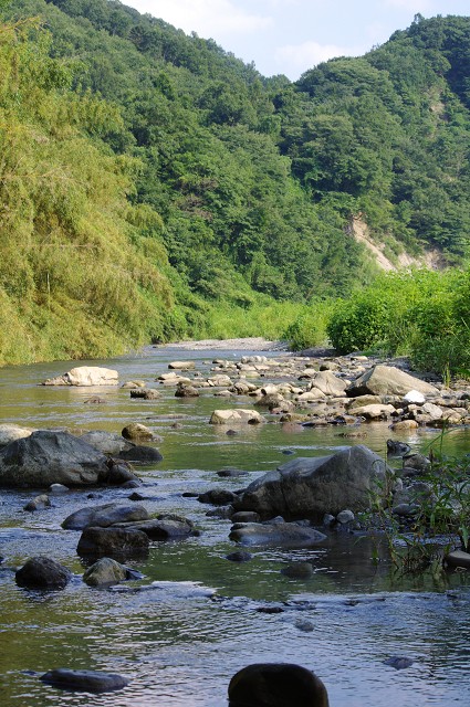 暑い日でしたが、河原の日影は心地よい風がそよぎ。